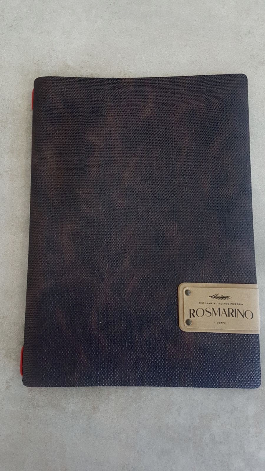 Custom-made Menu με τα logo των πελατών μας σε μεταλλική ή patch ετικέτα.